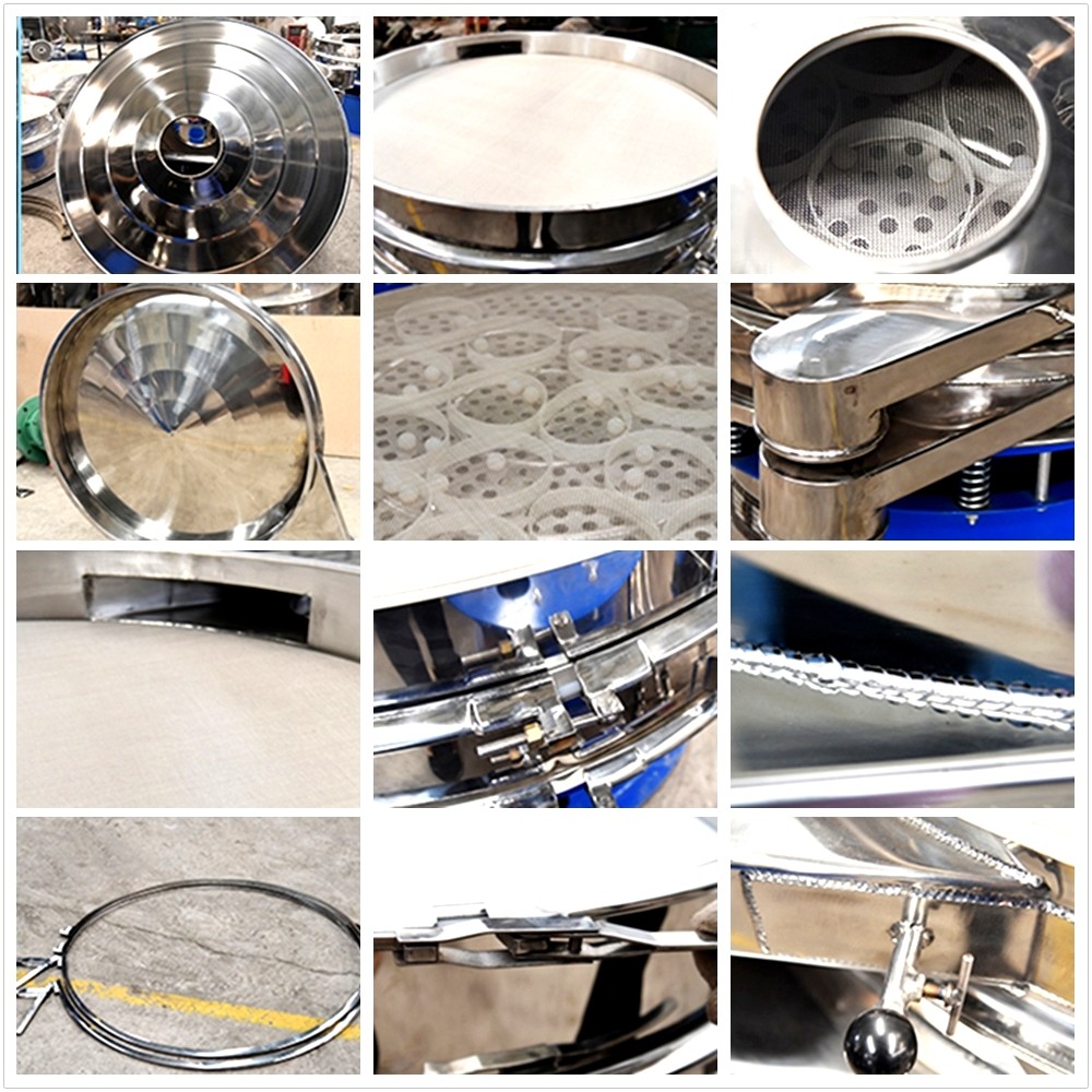 旋振篩是一種高精度細粉篩分機械,其噪音低、效率高,快速換網只需3-5分鐘,全封閉結構,適用于粒、粉、粘液等物料的篩分過濾。旋振篩是由直立式振動電機作激振源,電機上、下兩端安裝有偏心重錘,將電機的旋轉運動轉變為水平、垂直、傾斜的三次元運動,再把這個運動傳遞給篩面。調節電機上、下兩端的相位角,可以改變物料在篩面上的運動軌跡。