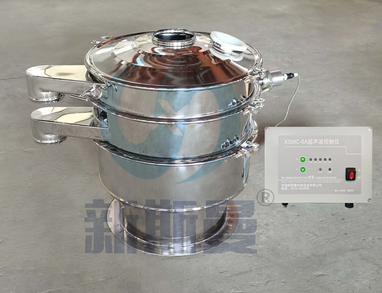 超聲波振動篩是將220V、50Hz或110V、60Hz電能轉化為36KHz的高頻電能,輸入超聲換能器,將其變成36KHz機械振動,產生的功率超聲波使篩網作高頻振動。篩網上的物料在作低頻旋振運動的同時,疊加上超聲振動,既可防止網孔堵塞,又可使篩分機提高產量和質量,從而達到快速篩分和清網的目的,使超微細粉篩分成為易事。該系統在傳統的振動篩基礎上在篩網上引入一個低振幅、高頻率的超聲振動波(機械波),以改變超微細分體的篩分性能。特別適合高附加值精細分體的用戶使用。