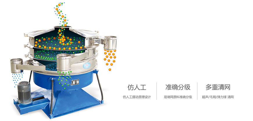 搖擺篩是一種仿人工搖動的低頻旋振篩,其原理是:瞬時運動為沿徑向的位移和以此位移為軸的圓周運動的合成(螺旋運動),即可調節偏心距的激振器產生了非線性三維運動,物料也產生同樣的近似手動作業的運動,從而達到篩分之目的,再配合篩分附件可獲得更加理想的篩分效果,適合于圓形狀、圓柱狀、片狀、乃至 于規則形狀易堵網且需要精細篩分的物料,是為了滿足大產量、高密度篩分用戶而設計的一種篩分設備,與一般圓形篩相比,它的篩分精度、效率、產量、篩網壽命能提高5-10倍,符合所有精細與超細范圍的粉末與微粒狀物料,特別適合難以處理的物料。還可單層或多層篩分,一次可篩分至6個粒度。