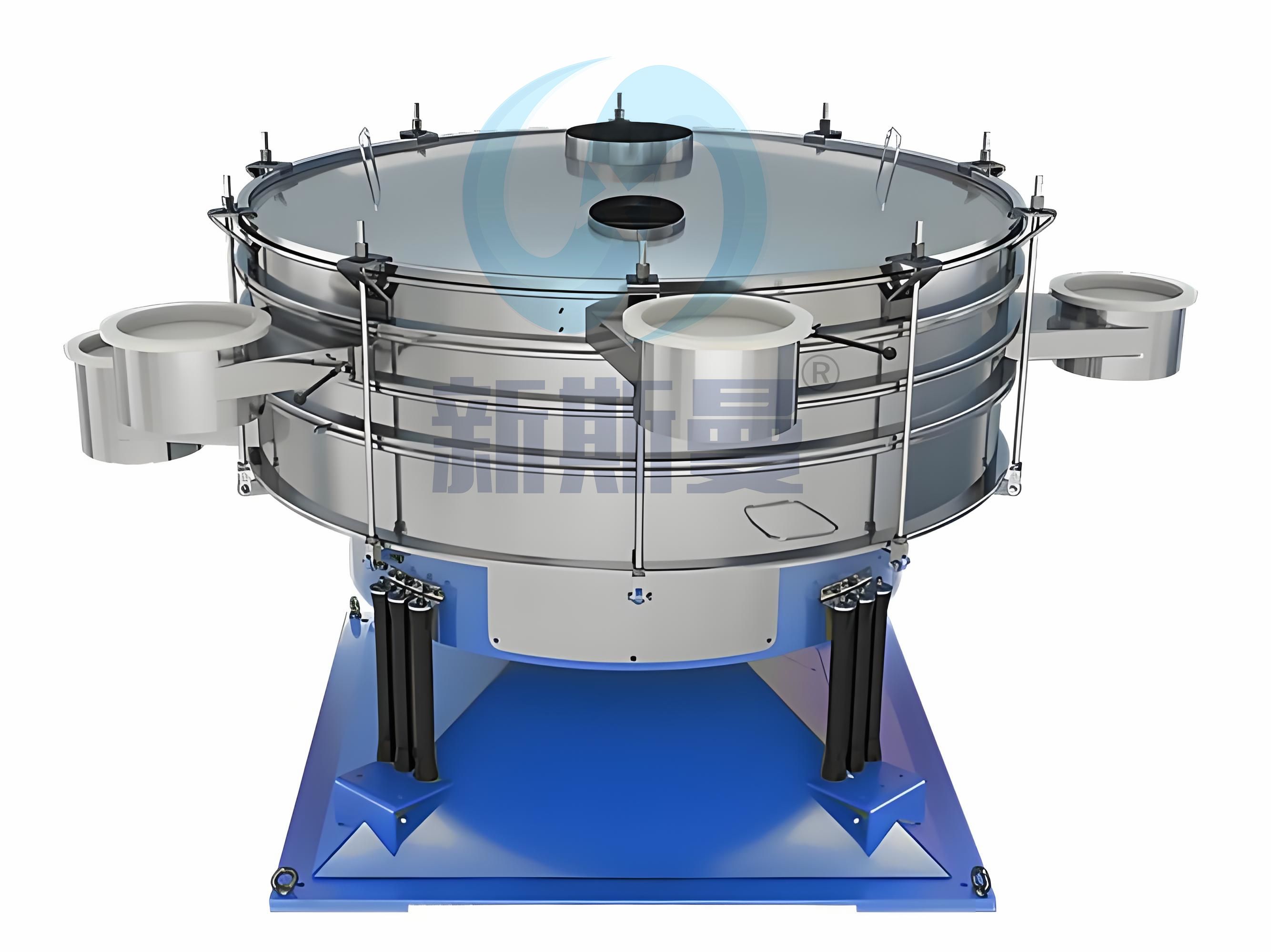搖擺篩是一種仿人工搖動的低頻旋振篩,其原理是:瞬時運動為沿徑向的位移和以此位移為軸的圓周運動的合成(螺旋運動),即可調節偏心距的激振器產生了非線性三維運動,物料也產生同樣的近似手動作業的運動,從而達到篩分之目的,再配合篩分附件可獲得更加理想的篩分效果,適合于圓形狀、圓柱狀、片狀、乃至 于規則形狀易堵網且需要精細篩分的物料,是為了滿足大產量、高密度篩分用戶而設計的一種篩分設備,與一般圓形篩相比,它的篩分精度、效率、產量、篩網壽命能提高5-10倍,符合所有精細與超細范圍的粉末與微粒狀物料,特別適合難以處理的物料。還可單層或多層篩分,一次可篩分至6個粒度。搖擺篩適合精細和超細范圍的粉末和微粒狀物料,產量大、精度高