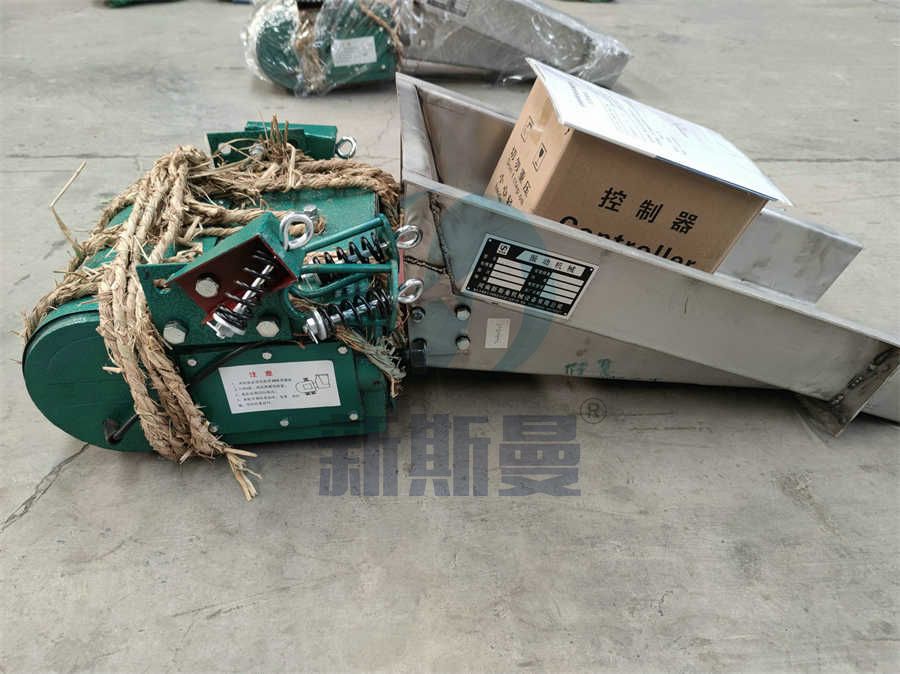 電磁振動給料機的給料過程是利用電磁振動器驅動給料槽沿傾斜方向周期往復運動來實現的,當給料機振動的加速度垂直分量大于重力加速度時,槽中的物料將被拋起,并按照拋物線的軌跡向前進行跳躍運動,拋起和下落在1/5秒內完成,料槽每振動一次槽中的物料被拋起向前跳躍一次,這樣槽體以每分鐘3000次的頻率振動,物料相應地被拋起向前跳躍,使物料均勻連續向前移動,實現給料。