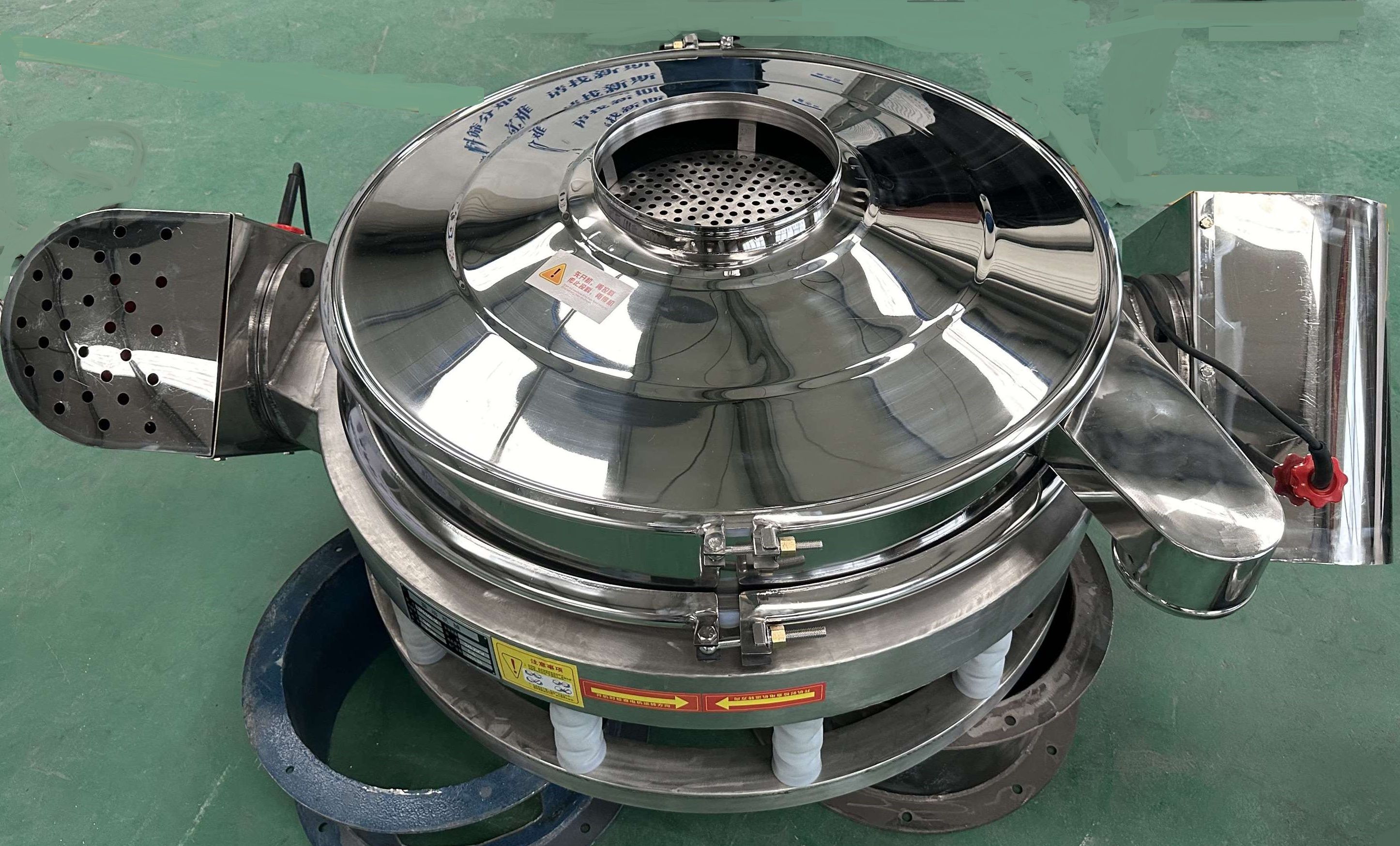ZPS直排篩是為部分行業(yè)特殊設(shè)計的一種多用途新型篩分機(jī),該機(jī)振動電機(jī)有單電機(jī)和雙電 機(jī)兩種動力布置方式,物料的運(yùn)行軌跡有多種調(diào)節(jié)形式,設(shè)備適應(yīng)性顯著增加;物料直接排放,有大的處理量。根據(jù)不同的使用條件,可以對直排式振動篩作針對性 的改型,以達(dá)到減輕員工勞動強(qiáng)度等問題,提高生產(chǎn)效率。直排式振動篩多用于面粉、淀粉、洗衣粉、金屬粉、添加劑、化工、非礦等行業(yè)的顆粒、粉末的粗略篩 粉、精密篩粉,處理量大、易于生產(chǎn)線的結(jié)合。可根據(jù)使用者要求設(shè)計制造,如將進(jìn)料口加高、出料口加裝蝶閥等