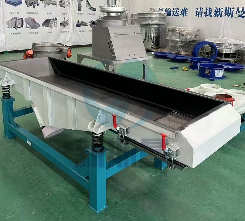 直線運動軌跡振動平衡特殊柵條設計,可防止物料堵塞,柵條間隙可調.