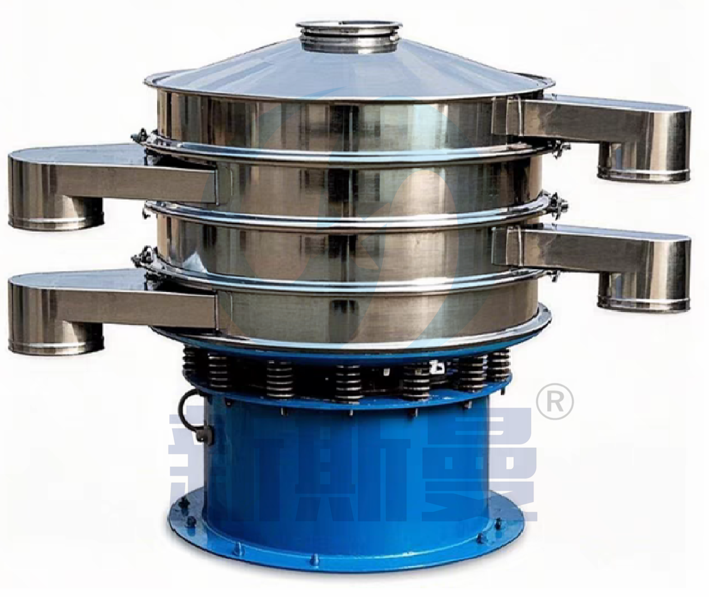 超聲波振動(dòng)篩是將220V、50Hz或110V、60Hz電能轉(zhuǎn)化為36KHz的高頻電能,輸入超聲換能器,將其變成36KHz機(jī)械振動(dòng),產(chǎn)生的功率超聲波使篩網(wǎng)作高頻振動(dòng)。篩網(wǎng)上的物料在作低頻旋振運(yùn)動(dòng)的同時(shí),疊加上超聲振動(dòng),既可防止網(wǎng)孔堵塞,又可使篩分機(jī)提高產(chǎn)量和質(zhì)量,從而達(dá)到快速篩分和清網(wǎng)的目的,使超微細(xì)粉篩分成為易事。該系統(tǒng)在傳統(tǒng)的振動(dòng)篩基礎(chǔ)上在篩網(wǎng)上引入一個(gè)低振幅、高頻率的超聲振動(dòng)波(機(jī)械波),以改變超微細(xì)分體的篩分性能。特別適合高附加值精細(xì)分體的用戶使用。