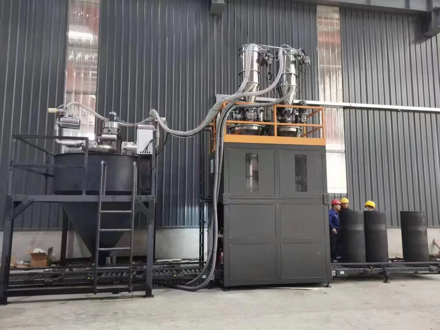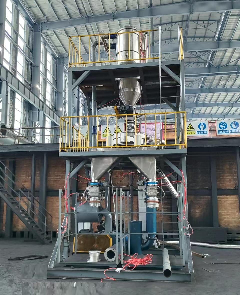 公司針對新能源、新材料、石墨化預碳化、鋰電負極行業等設計的生產線,大功率真空吸料機,輸送距離最達遠可達170米,260°高溫料經過冷卻系統可直接裝進噸包。(石墨化坩堝投料設備,坩堝壓實設備,艾奇遜爐投料設備,石墨化吸料小車,石墨化投料小車,石墨化高溫吸料系統)