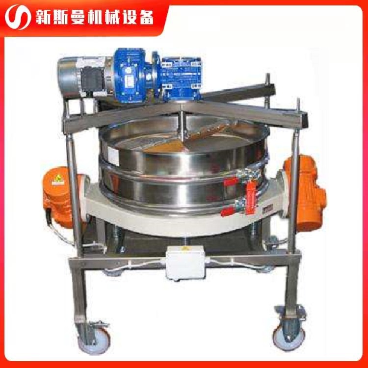 強制式振動篩是新斯曼械有限公司設計的一款新型篩分設備,其主特點在于安裝了不銹鋼刮板(也可安裝毛刷),
